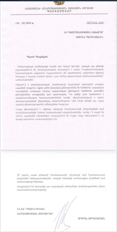 ԱԺ «Պատիվ ունեմ» խմբակցության քարտուղար Տիգրան Աբրահամյանը գրում է․ «Պաշտպանության նախարարը հայտարարել է, որ նախատեսվող բարեփոխումների շրջանակներում ռազմաուսումնական հաստատություններն ավարտող սպաների քննական դրական գնահատականներն ավտոմատ կհամարվեն ատեստացիայի քննությունների հաղթահարում: